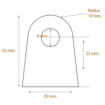| 25 mm | 32 mm | 3 mm | 8 mm | 22 mm (from base) | 10 mm |