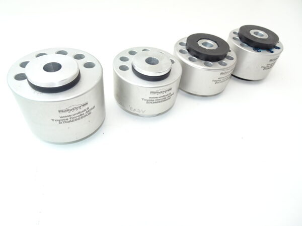Toyota Corolla AE82 4AGE koneella, vakioiden moottorikannakkeiden kumien tilalle jämäkät billet puslat PUR heloilla. 4kpl. Käy suoraan paikalleen, prässitiukat.