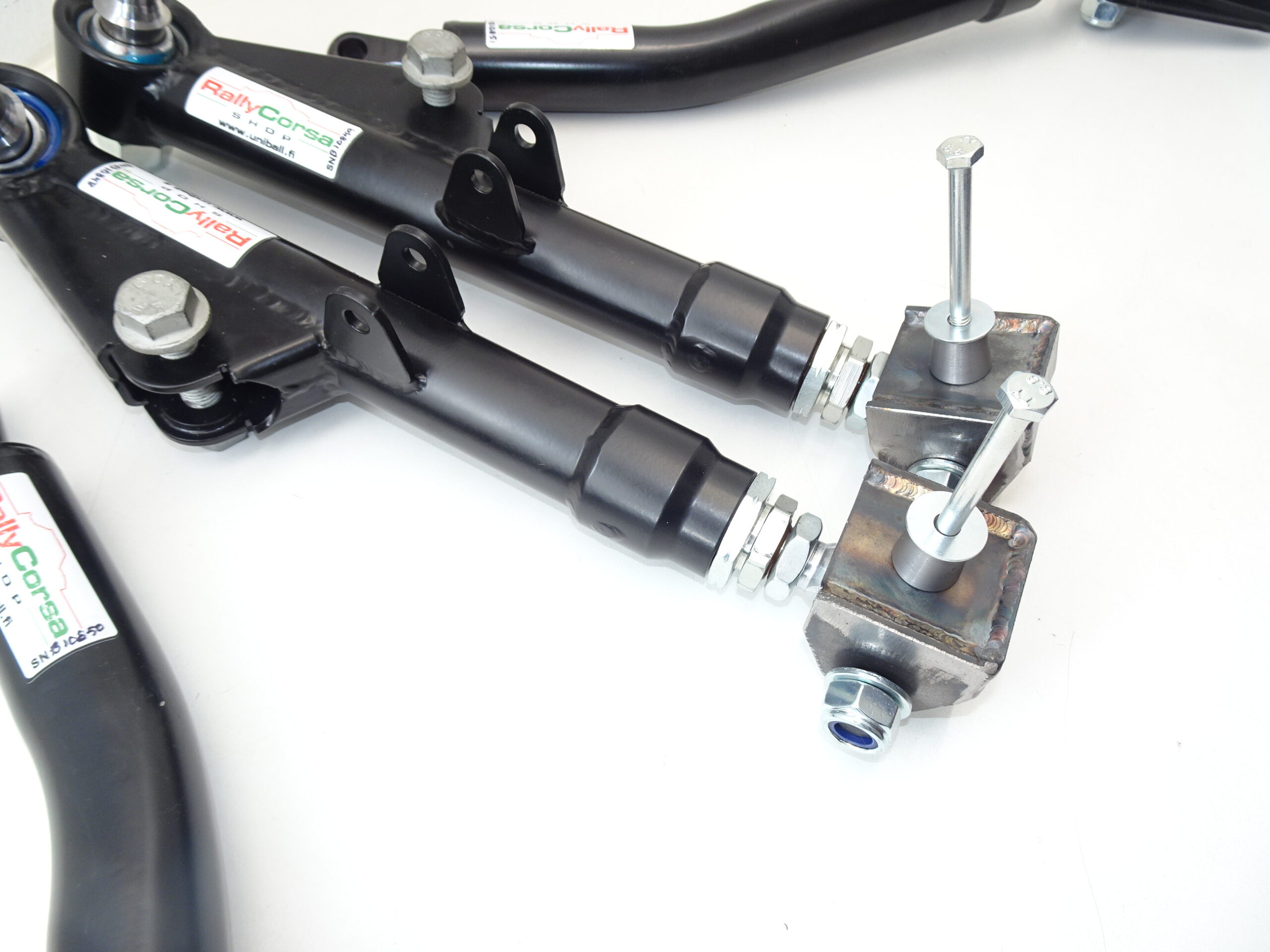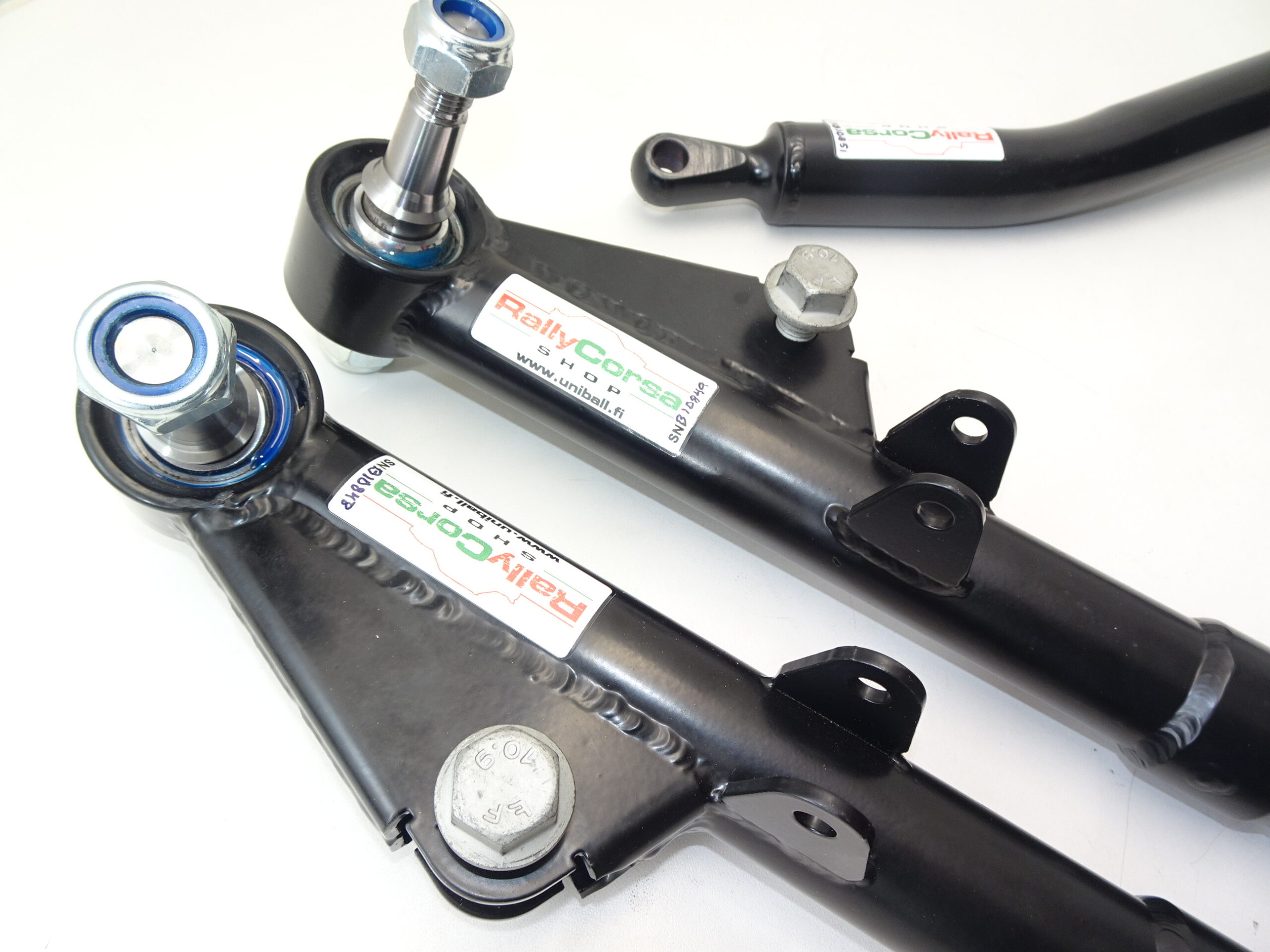 - Tukivarret: 25CroMo4-rakenne. Korin puolella 16 mm uniball-nivel, pyörän puolella 20/40 mm uniball-nivel. Paikallaan säädettävä (kaksi lukkomutteria).