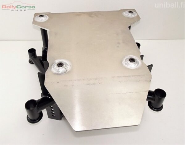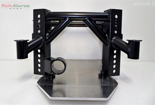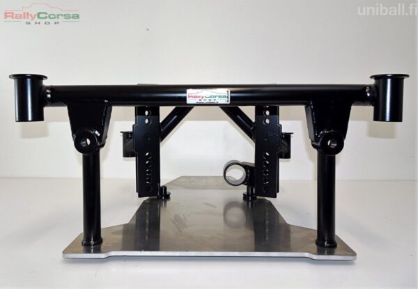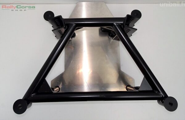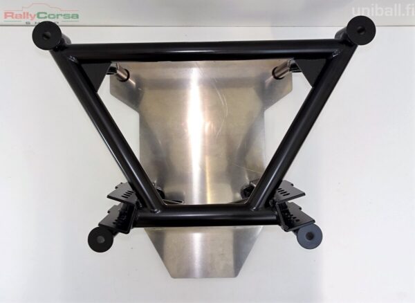 Perän kanssa voit käyttää alkuperäisiä puslia, uretaaneja tai vaikka alumiinipuslia. Korikiinnitys on jäykkä.  Paketti on suunniteltu niin, että kun pultit ovat auki niin perä putoaa suoraan alaspäin apurungosta. Ei hankalaa pujottelua apurungon sisään. Kaiken kruunaa integroitu pohjapanssari. Pohjapanssari paitsi suojaa perän, myös toimii apurungon alaosan jäykisteenä. Kaikki tämä on kromimolybdeeniterästä, pohjapanssari 6xxx alumiiniä. Tukivarsien asennusväli 40mm.