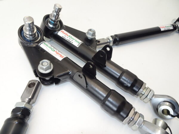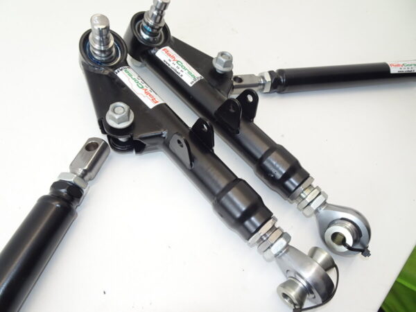 – alatukivarret 35×2.0mm putkea, korin puolella oikeakätinen CroMo uniball, pyörän puolella sopiva pallonivelen tappi ja CrMo 40/20mm varreton nivel.  Veitsivakaajia varten kiinnitys korvakot tukivarsien päällä.