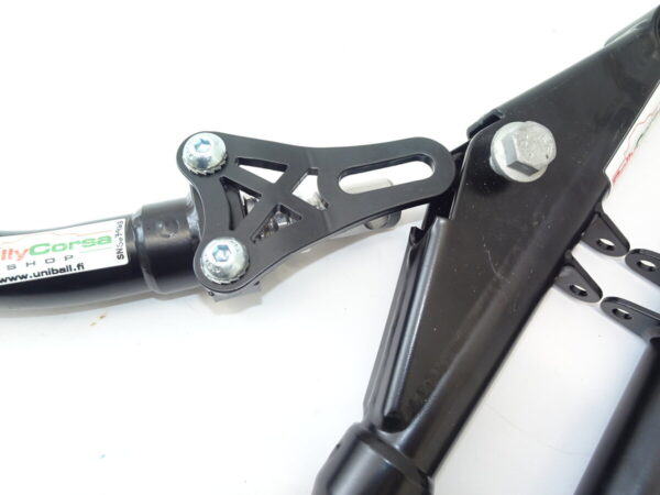 • Cromo reaktiotanko jossa tukivarren liitoksessa paikallaansäätö, avaat kaksi lukkomutteria ja vain pyörität säätöä.